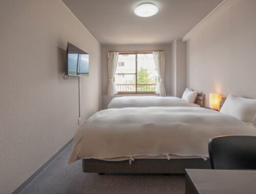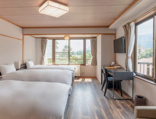 This is the biggest room in the hotel at 28sqm with ensuite and a view of the Japanese Alps and Olympic Jump Stadium.