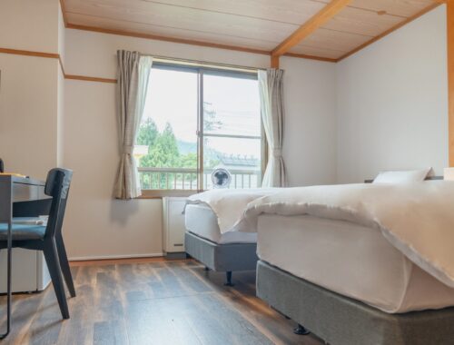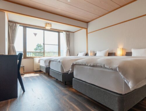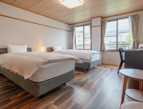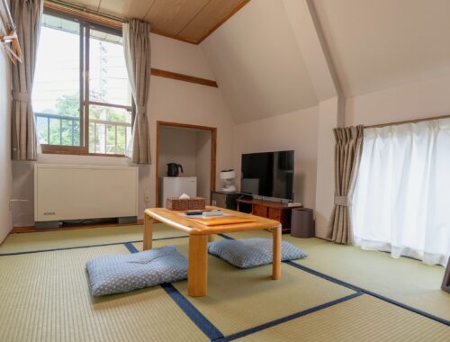 A traditional Japanese tatami room of 15sqm for 2 pax with ensuite and comfortable futon mats.